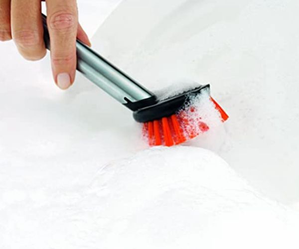 2、使用方便。大小、長度合適的手柄設(shè)計,不管是用來洗碗、刷鍋、洗水果,都可以輕松搞定,一點都不覺得手酸。